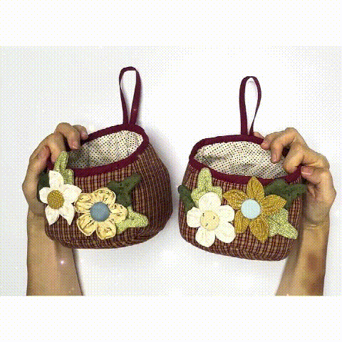 This is not just a basket. Itโs a flower basket โ literally! With this sewing template set, you can create adorable hanging fabric baskets decorated with a cheerful flower in front ๐ผ. Itโs practical (holds your small items), pretty (doubles as wall dรฉcor), and beginner-friendly (no complicated measuring needed).