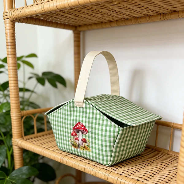 ๐ Cottagecore Vibes with Actual Utility This isn't just a pretty dust collector. The finished product is a sturdy, functional picnic basket with a sturdy handle and a clever dual-side opening design (like a classic picnic hamper, but soft!). It stands up on its own and holds your stuff securely. It’s perfect for organizing your sewing room, carrying snacks, or just sitting there looking incredibly cute.